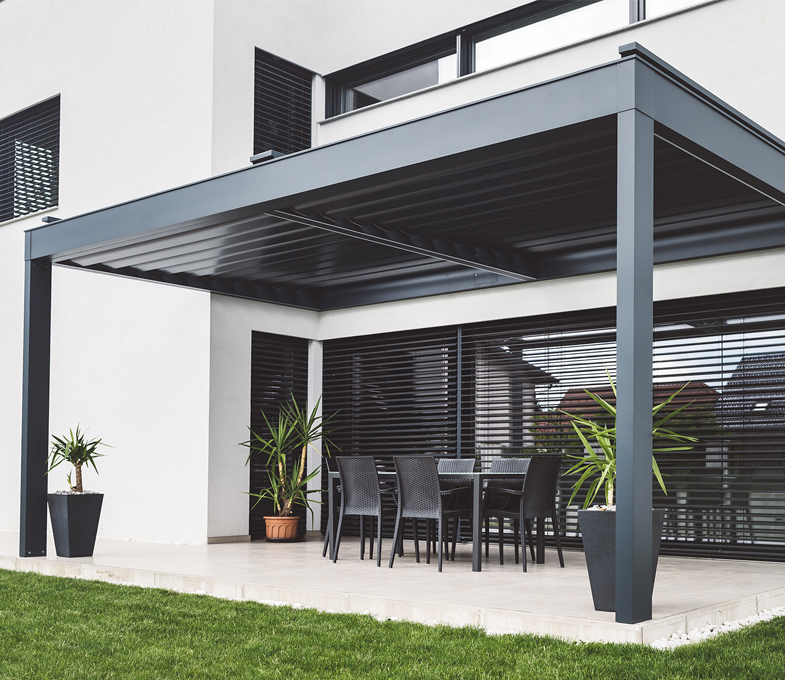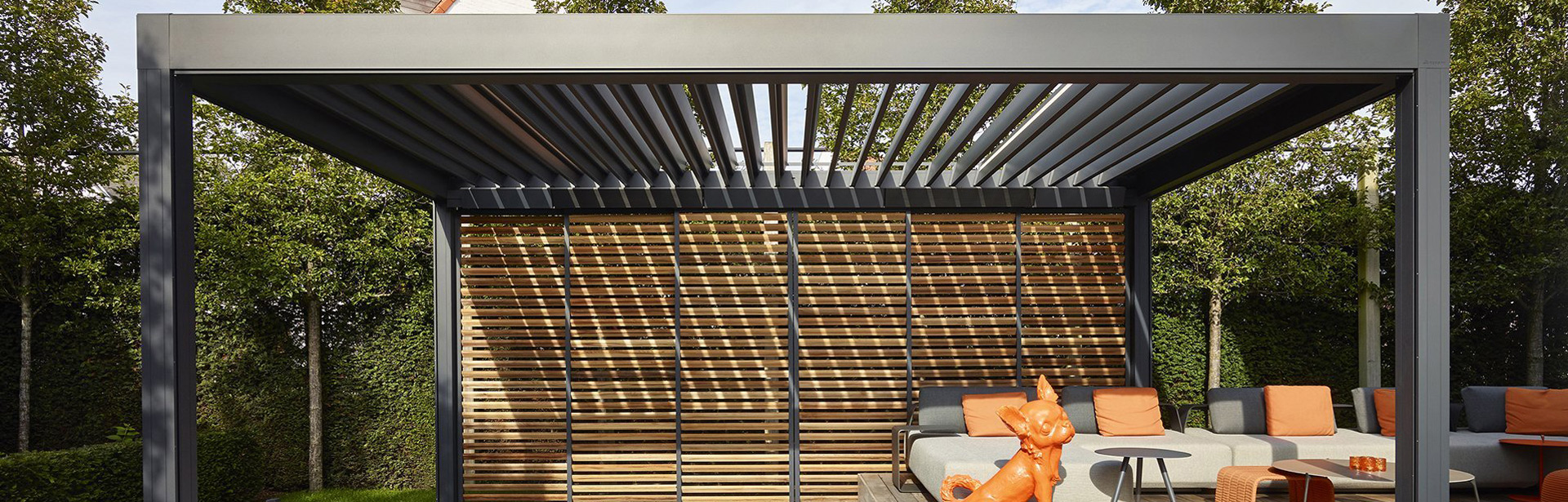 A bioklimatikus pergola az egyik legmodernebb árnyékolástechnikai termék, amely lehetővé teszi, hogy akár egész évben a szabadban töltse az időt, barátaival, családtagjaival. Ez a típusú pergola természetesen szabályozza a szerkezet alatti hőmérsékletet, továbbá véd a Nap, az eső és szél ellen. A teljesen időjárás álló állvány és a hozzá tartozó felső lamellák is alumíniumból készülnek. A lamellák motoros működéssel, távvezérléssel forgathatók, ez teszi lehetővé a természetes konvekciót és ez által érhetjük el a kívánt hőkomfortot.