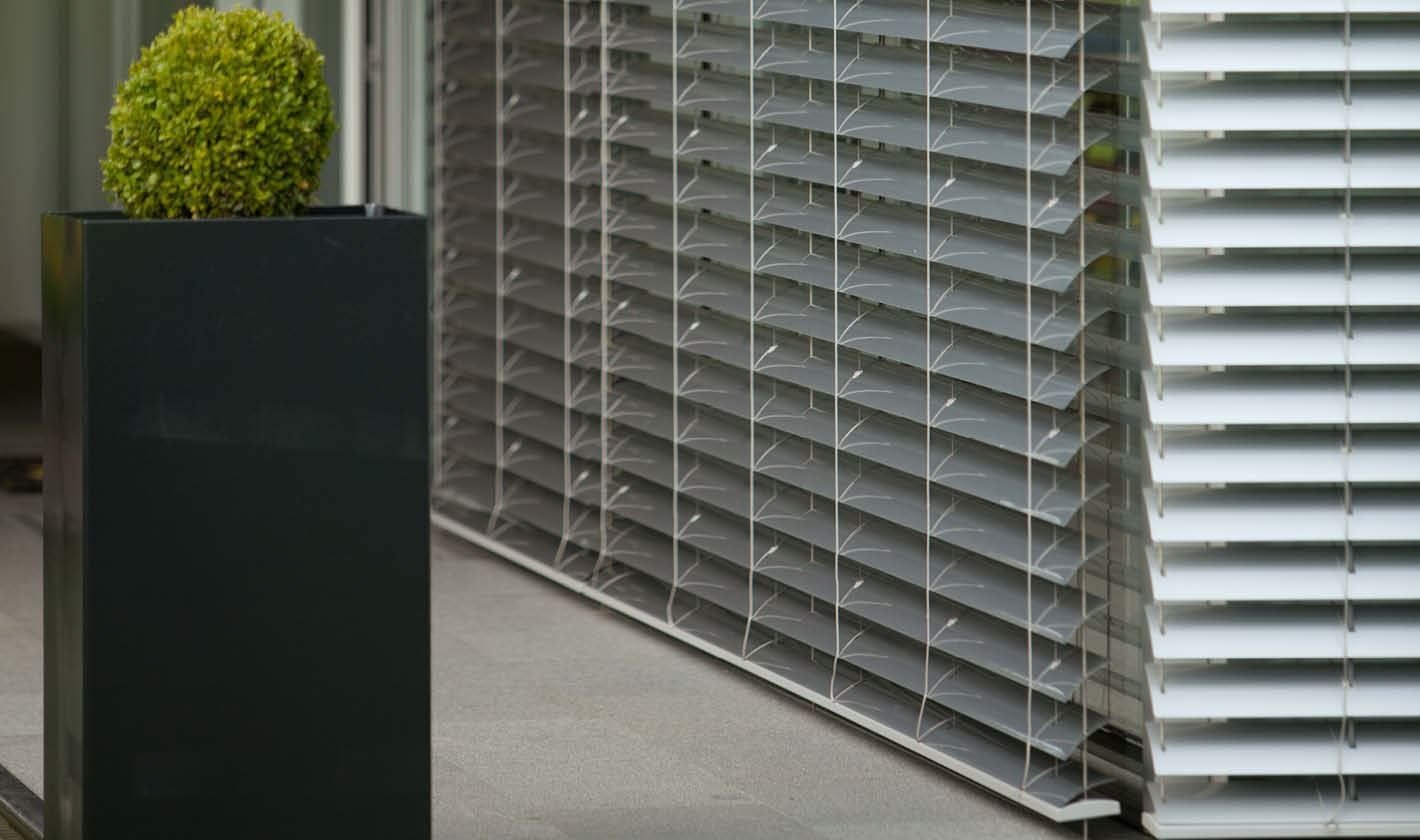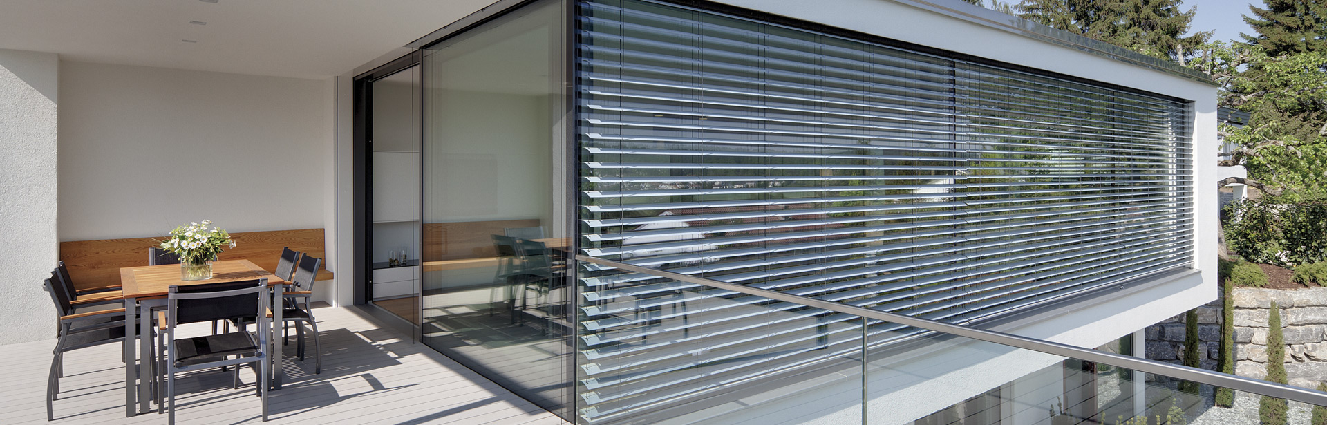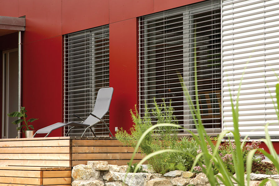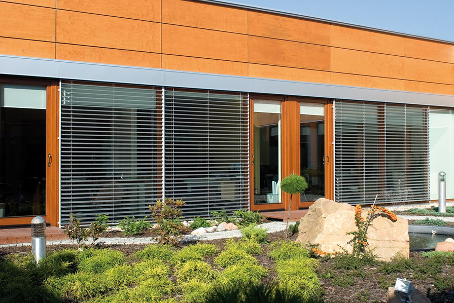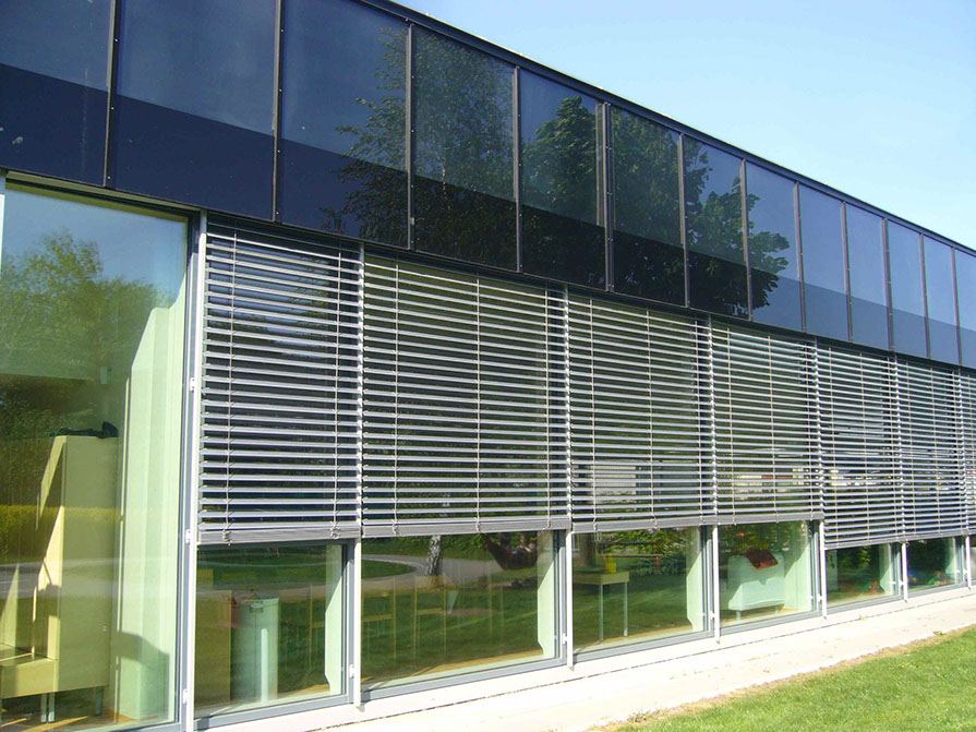 A redőnyöknél sokkal kedvezőbb fényszabályozást biztosító, hangsúlyosabb, izgalmasabb homlokzati képet nyújtó külső lamellás árnyékoló